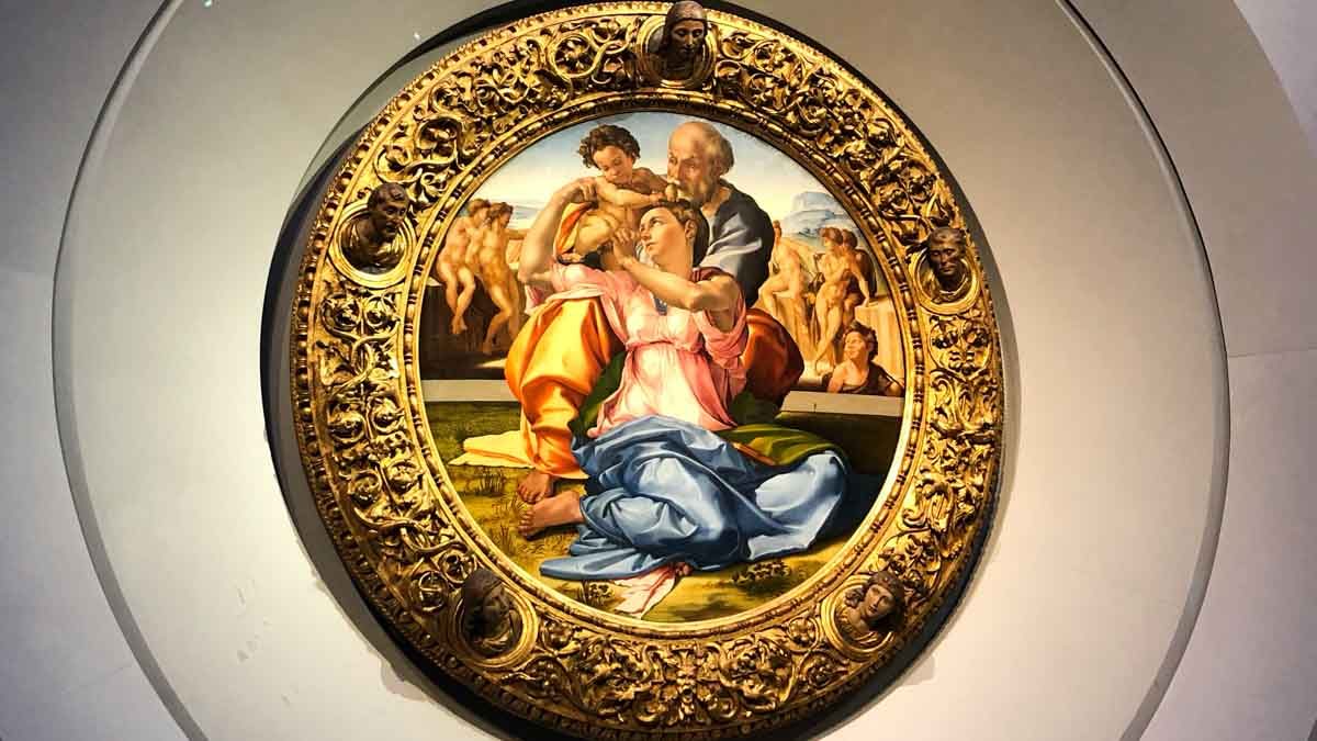 Este é um quadro do famoso Michelangelo, de 1504. Ele retrata a própria família Doni, por isso o nome.