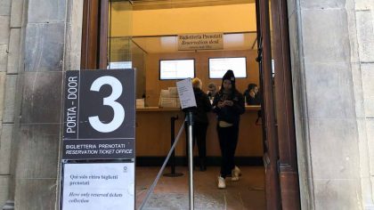 E então você receberá seu ingresso para entrar na Galeria Uffizi. Com o ingresso em mãos, dirija-se para a porta 1, onde geralmente tem uma pequena fila na entrada. Antes de entrar efetivamente no museu, você deverá passar por um detector de metais, então fique atenta(o)!